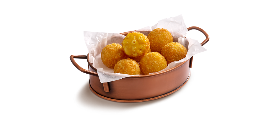 Kremalı peynir sosu ile hazırlanmış makarna, çıtır dış kaplamasıyla buluşarak mükemmel bir atıştırmalık sunar.