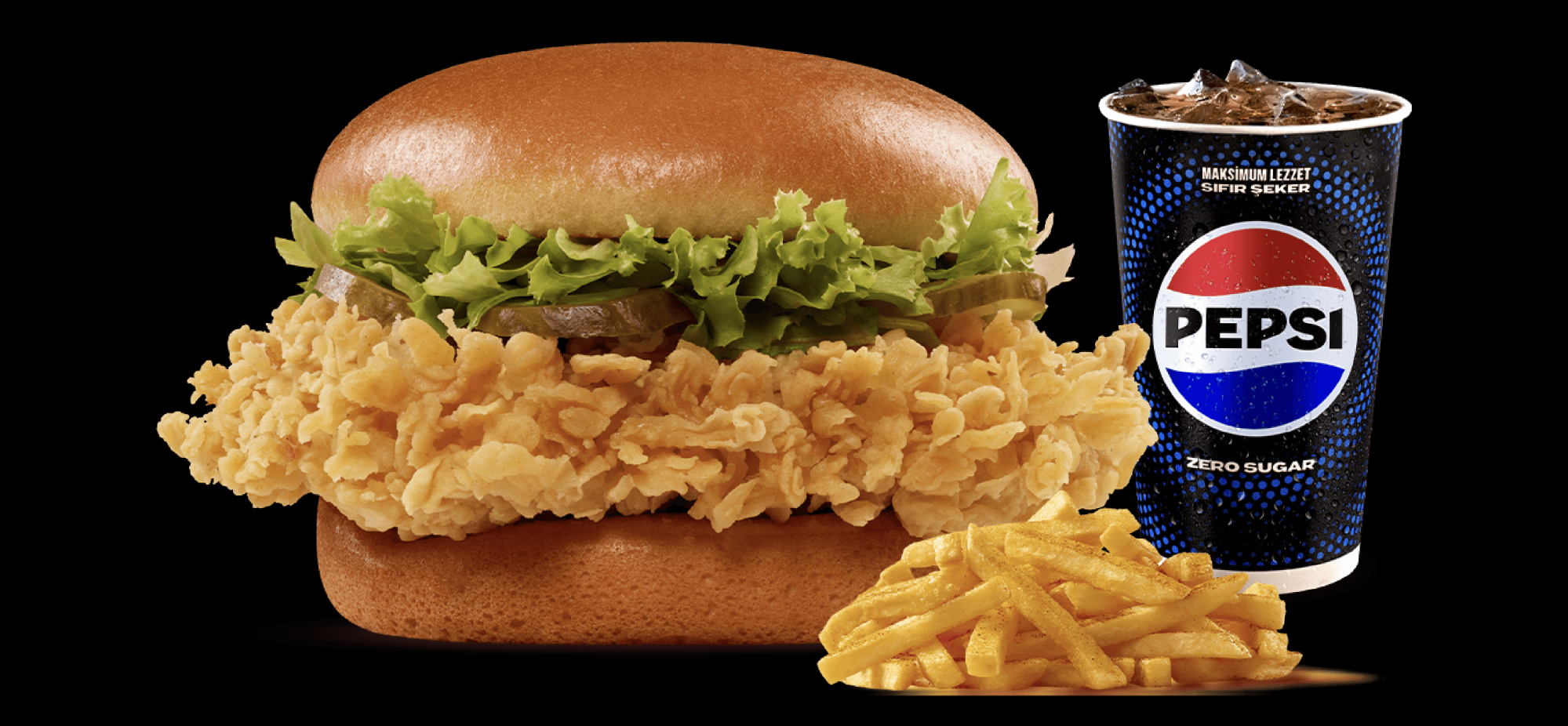Özel baharatlar ile hazırlanmış çıtır kaplamalarla dışı çıtır, içi yumuşak özel soslarla marine edilmiş tavuk bonfile parçaları, patates kızartması ve salata eşliğinde lezzet dolu bir tabak sunuluyor.