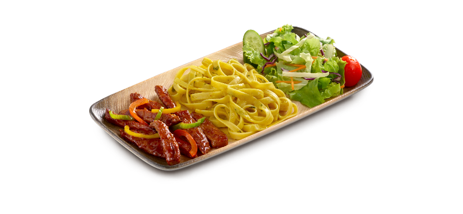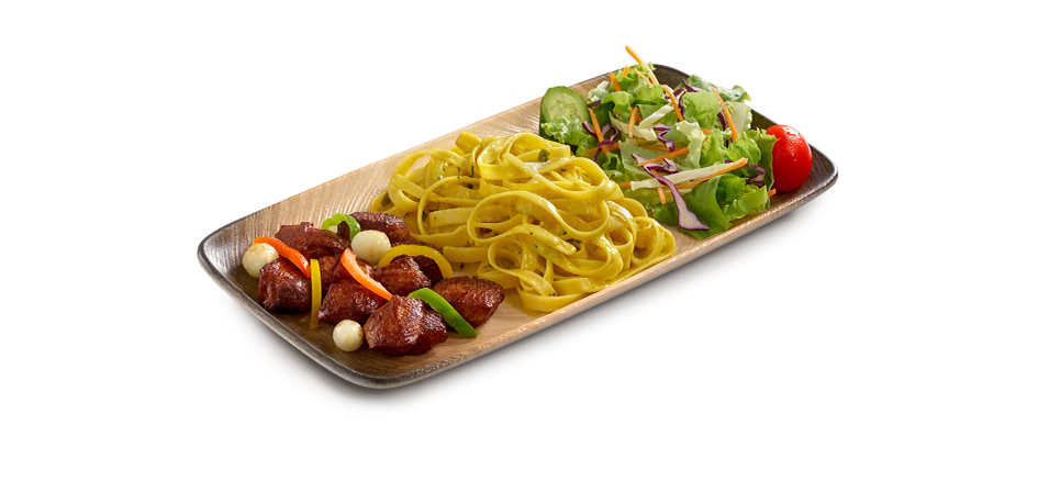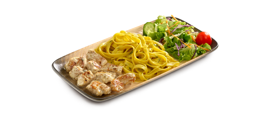 Tarifi şeflerimizde saklı olan, yerken kırmızı et hissi veren tavuk bonfile, pesto soslu makarna ve salata ile servis edilir. (Ekonomik Tabaklarımız 150 gr'dır.)