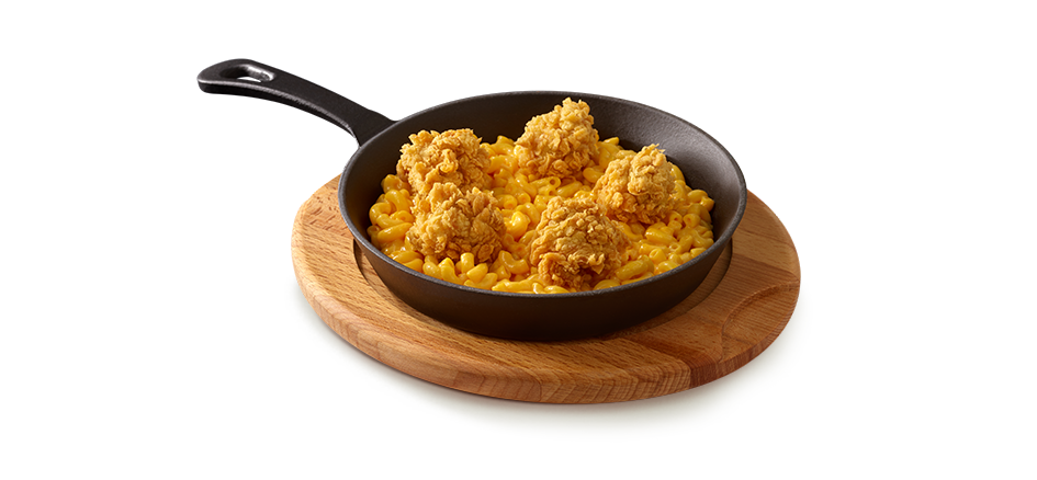 Çıtır popcorn tavuklar ve cheddar peyniri, pesto sos, üzerine rendelenmiş taze kaşar ve parmesan peyniri ile hazırlanan zengin Mac&Cheese sosu ile hazırlanan dirsek makarna, her lokmada aromatik bir lezzet sunuyor.